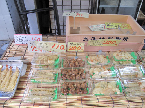 店頭には持ち帰り用のうどんやそば玉、天ぷらが販売されてます。