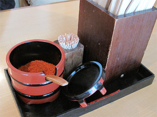 取り放題のネギはありませんが、天かすと一味はあります。