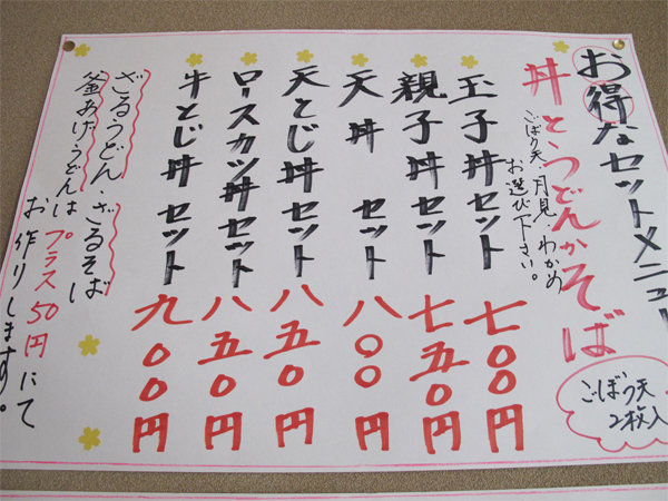 うどんorそばと丼物の定食メニュー。