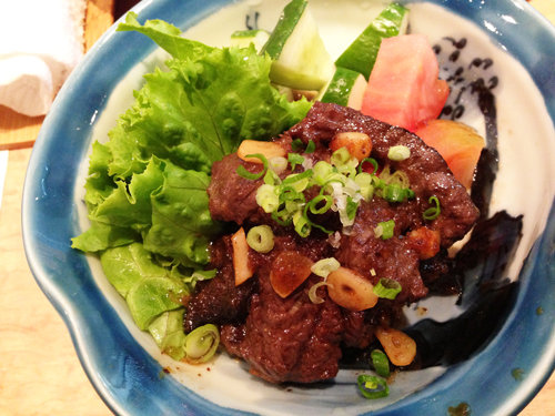 鯨の赤身のしっかりした食感とやや濃いめの生姜醤油味が合います。