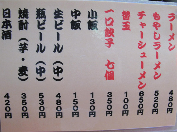 基本のラーメンは480円。