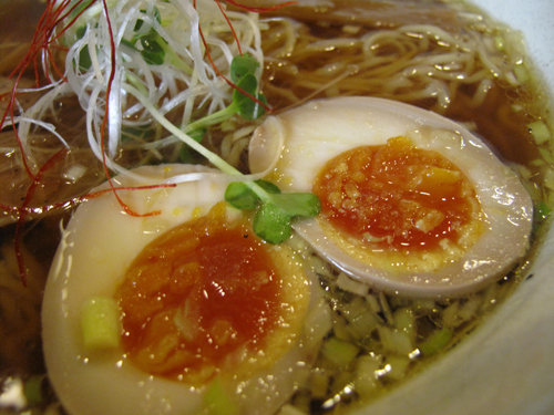 スープを汚さない火の通り具合の半熟玉子。
