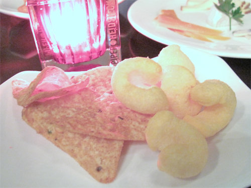 お通しは、カールとトルティージャチップスでした。