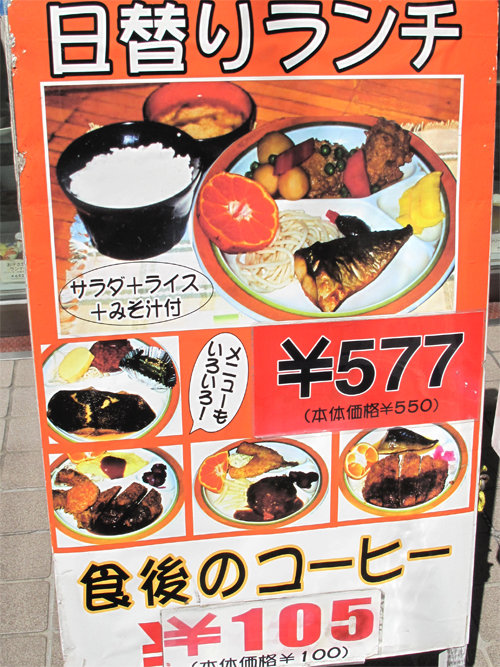 ある日、同僚と歩いていて、ふと目に留まった日替わりランチの立て看板。