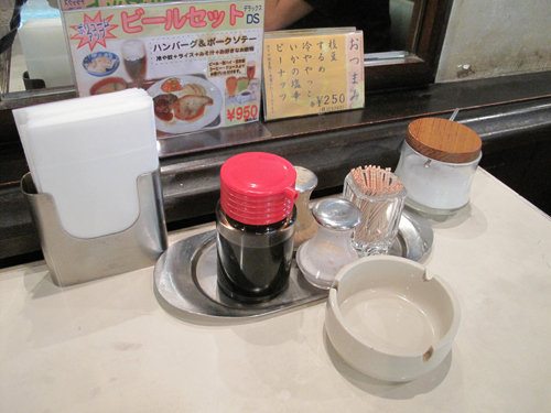 卓上の調味料は塩・コショウ・ウスターソース。