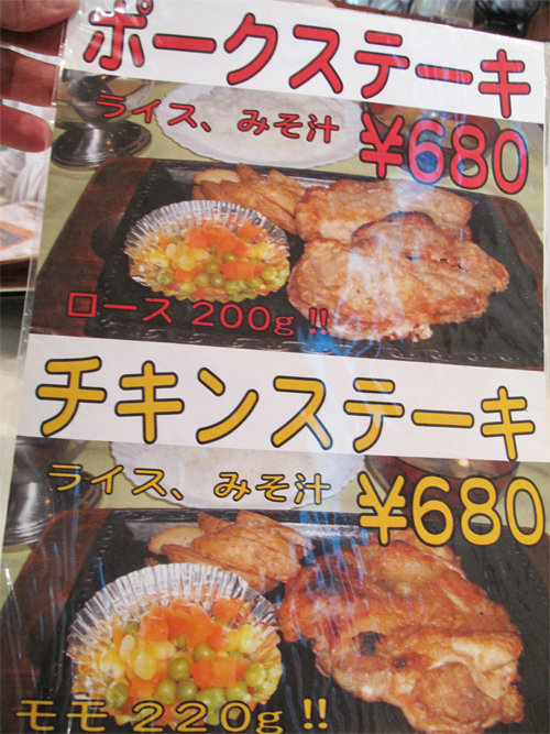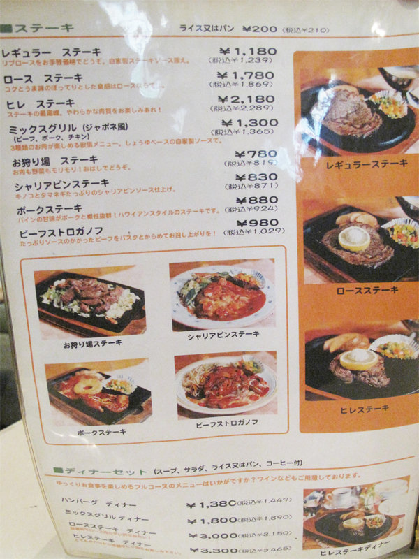 ステーキ・ディナーセットのメニュー。