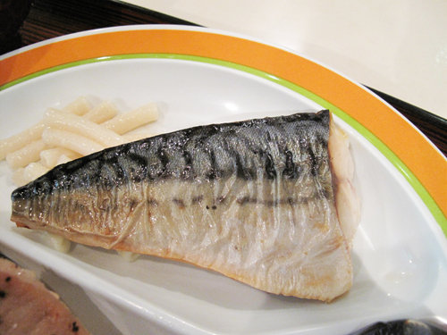 焼きサバ、マカロニサラダの盛り合わせでした。