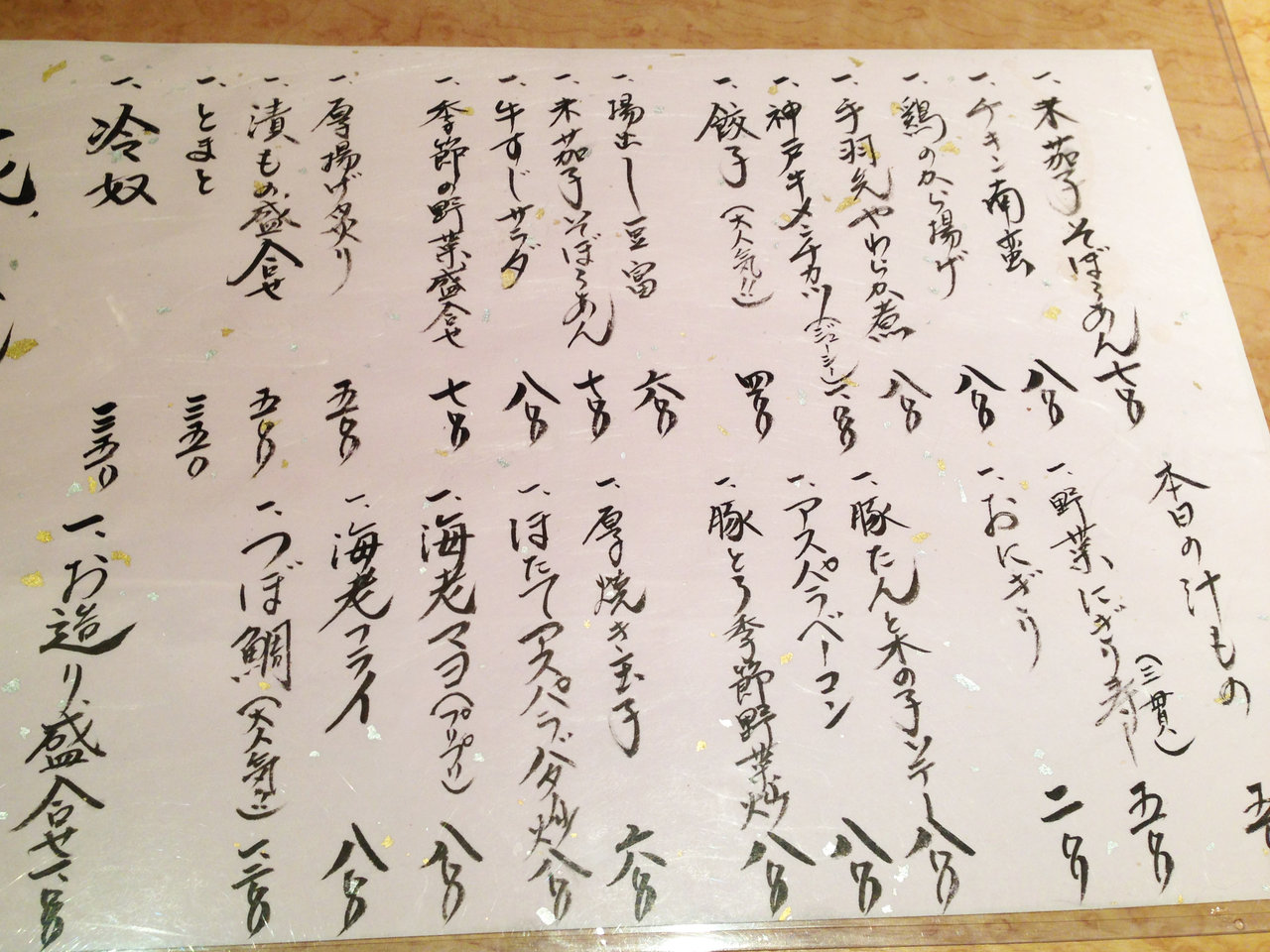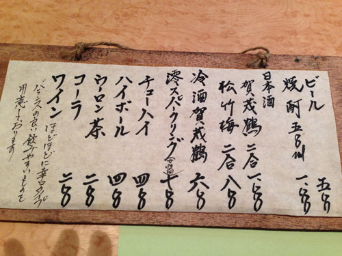 お通しを食べながら、ママさん手描きの本日のメニューを眺めます。