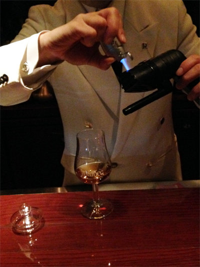 アードベッグが残っているグラスに煙をバーン!と打ち込みます。