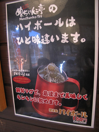 ハイボール180円、メガハイボールが350円とは安い♪