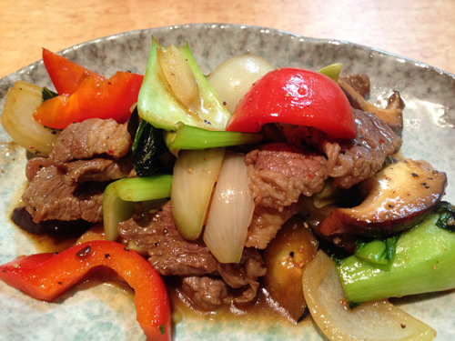 牛バラ炒め(野菜入り)。