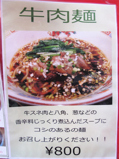 『牛肉麺』こと牛肉入り汁そば800円。