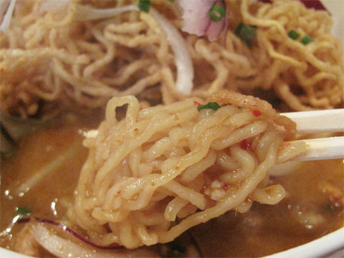トッピングというか、麺の半量はあるのではないかと思われる揚げ麺が印象的。