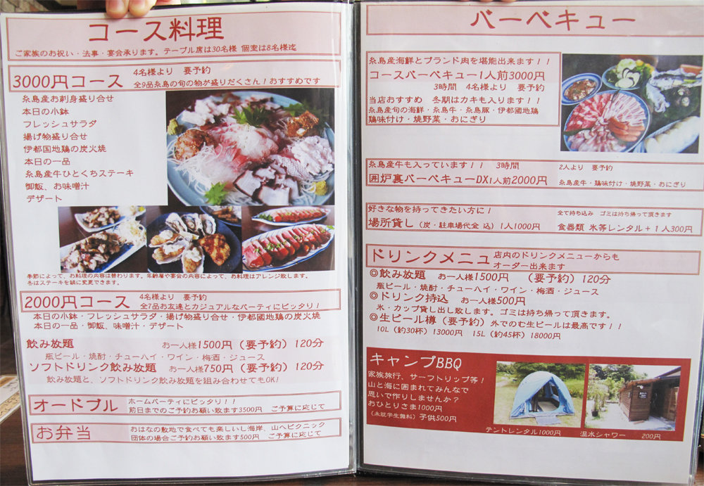 こちらはコース料理とバーベキューセットのメニューです。