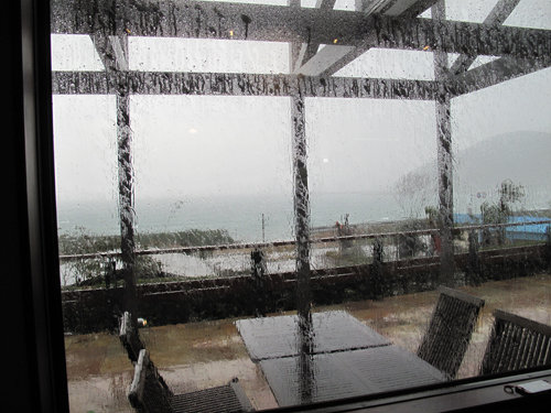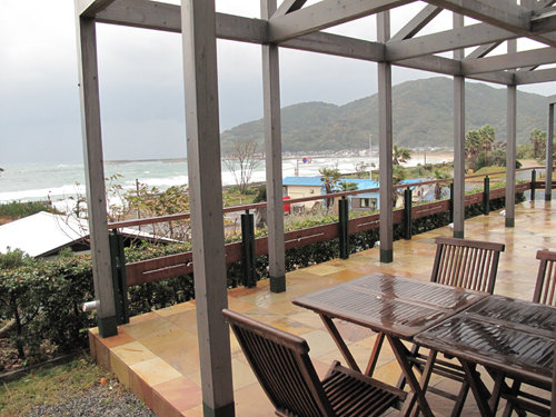 温かい部屋から海を眺めながら、しばし寛ぎます。