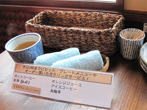 温かいお茶とおしぼりのサービスも嬉しい。