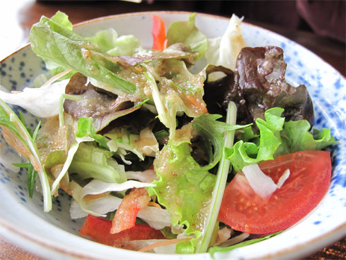 自家製の和風ドレッシングがかかったミニサラダ。