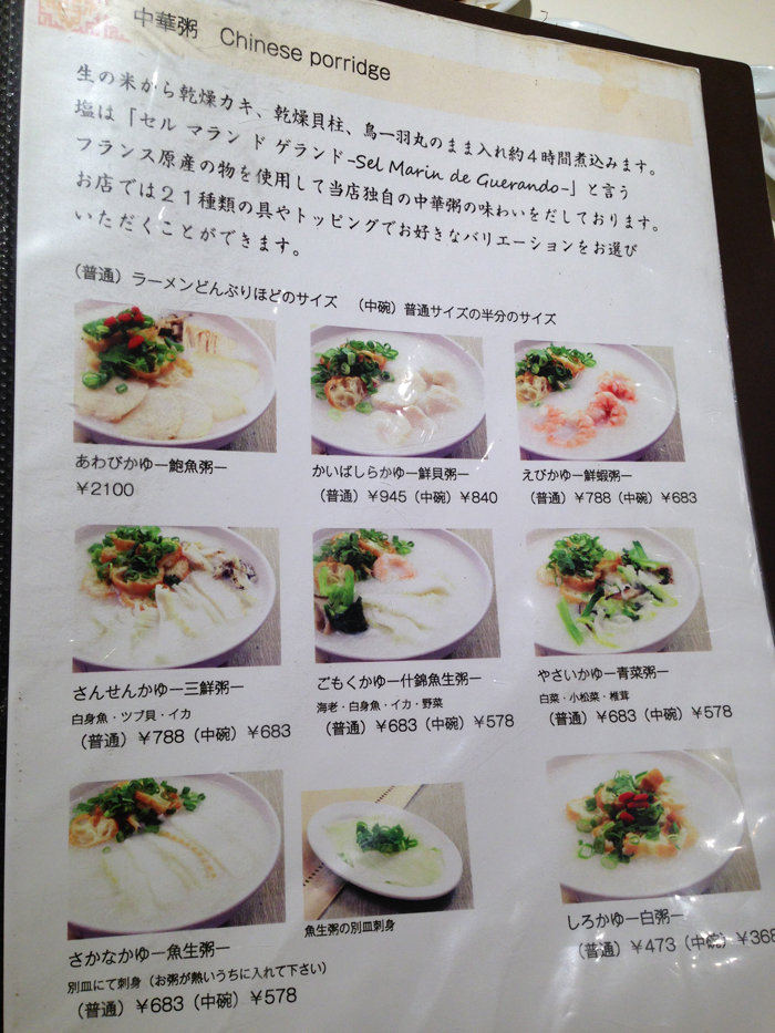 こちらは海鮮系中華粥メニューです。