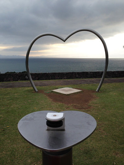 ハートのアーチの下で記念写真を撮れるスポットの前には、
