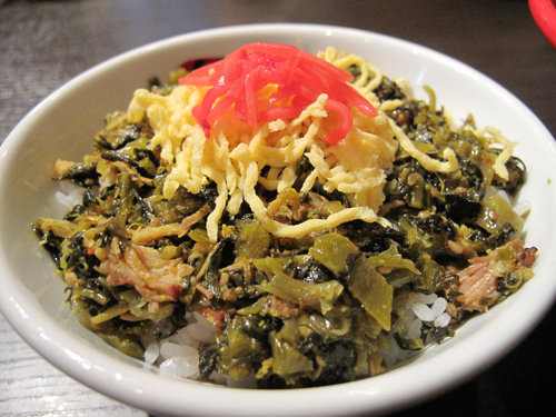 平日のランチタイムには、基本のラーメン600円にミニチャーシュー高菜丼が付いて700円。