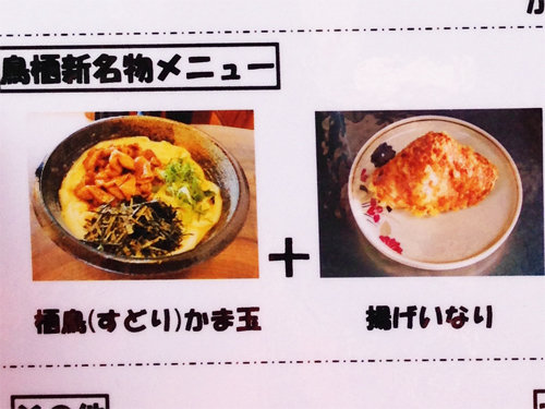 メニューで気になったのは、鳥栖新名物メニュー『栖鳥かま玉+揚げいなり760円』。