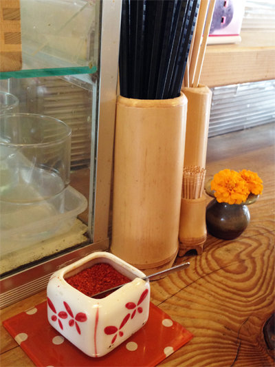卓上には一味唐辛子。