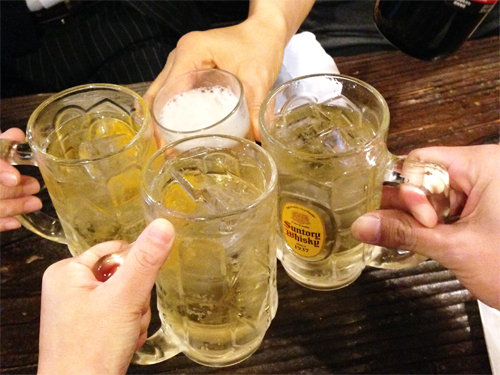 瓶ビールとハイボールで乾杯。