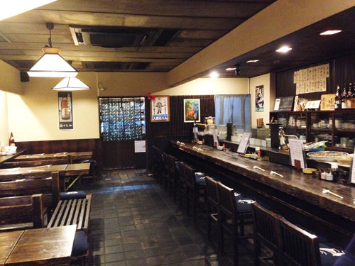 1階のカウンター席とテーブル席。