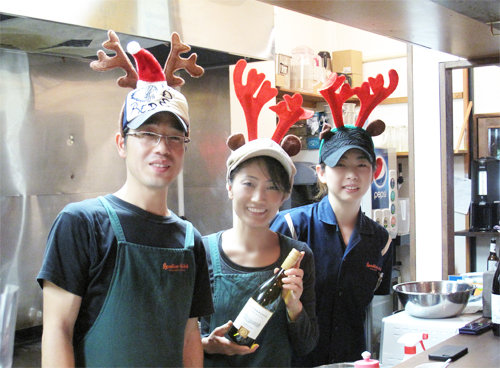 中に入ったら、お店の方々がクリスマスバージョンで迎えて下さいました。