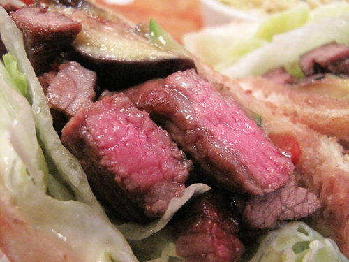 ちょっと食べにくいのですが、丁度良い焼き加減のお肉とナスと溶けたチーズとシャキシャキレタスに