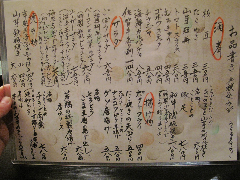 居酒屋おつまみメニュー。