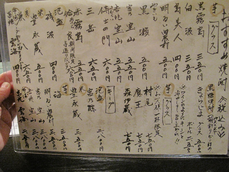 おすすめ焼酎メニュー。