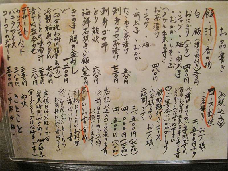 ご飯もの・コースメニュー。
