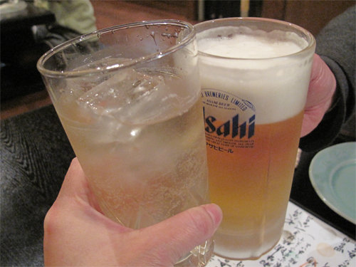 生ビールとハイボールで乾杯。