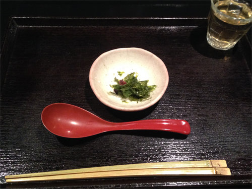途中、小皿の岩海苔と薬味を加えて、磯の香りを楽しみます。