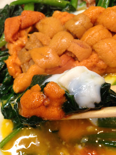 スタイルは色々あるようですが、青菜と生ウニを使うところは共通してるようです。
