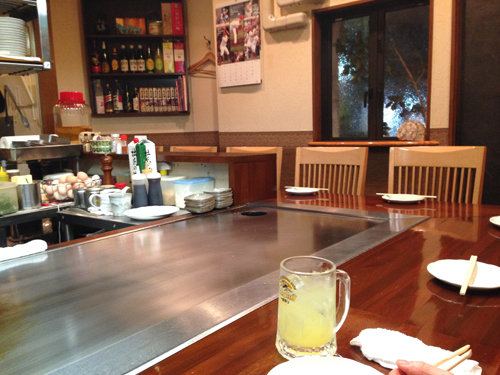 店内には手前が大きな鉄板と厨房を囲むカウンター、奥には座敷があるようでした。