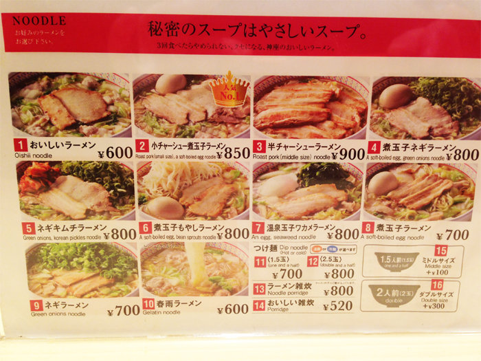 おいしいラーメン600円。