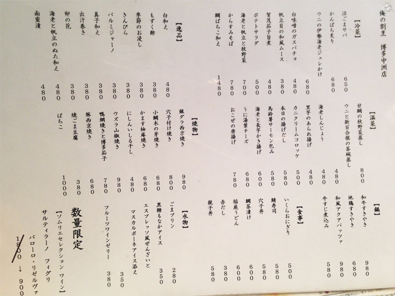 中洲川端駅周辺は、凡庸な居酒屋が多いので、もうちょっとイイものを食べたい時はココがオススメですね。