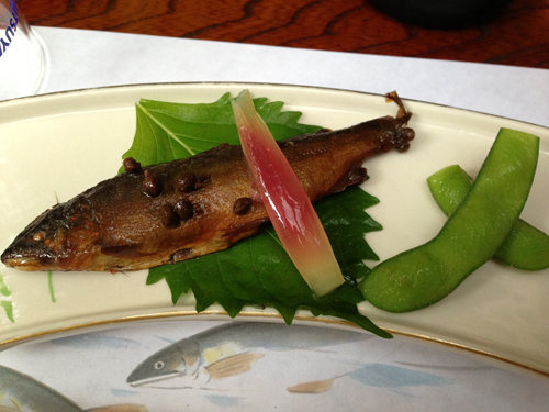ビールで乾杯した後は、鮎の甘露煮を頂きます。