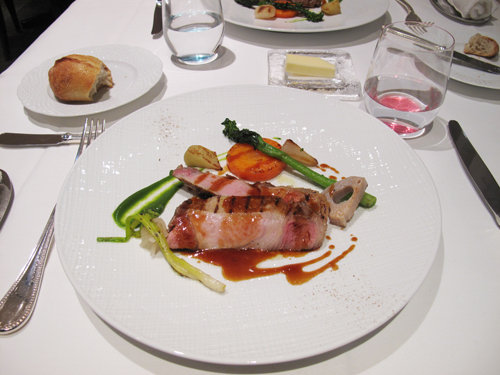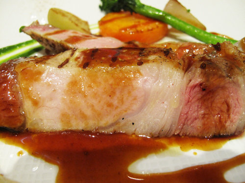 【肉料理】佐賀産さくらポーク ロースのロースト 旬の野菜のソテー、ジュのソース、八丁味噌風味
