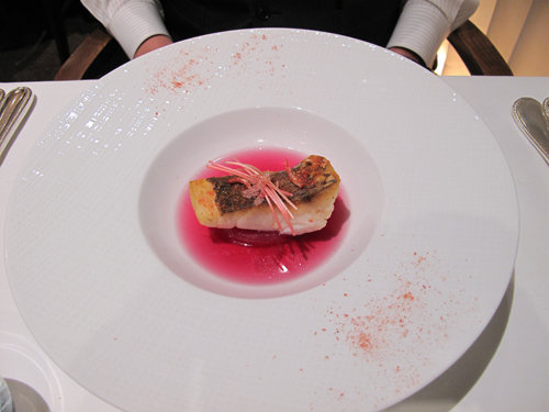 【魚料理】玄界灘 天然桜鯛のポワレ 桜コンソメ仕立て、桜エビの香り