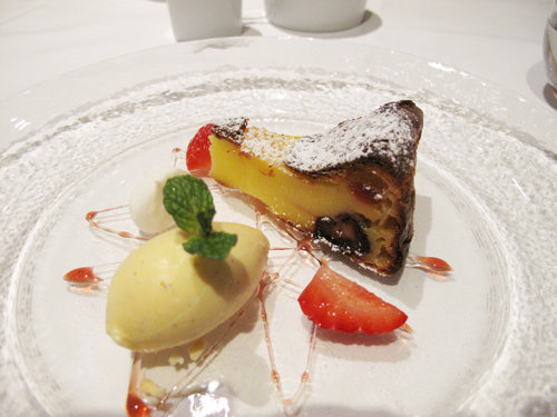 【デザート】さくらんぼのクラフティー、バニラのアイスクリーム