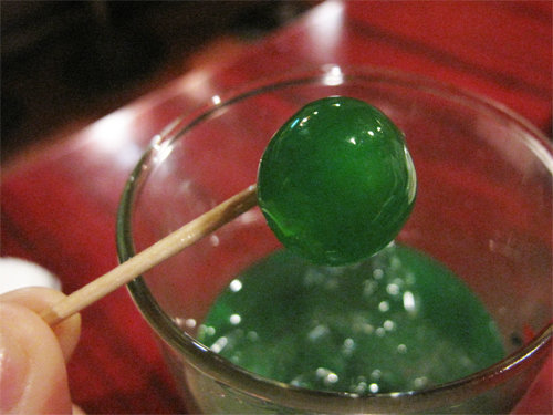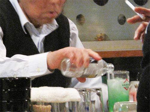 そして、出してきたのは、ミントの葉ではなく、緑色のミントリキュール…。