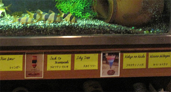 水槽の下にはカクテルと思わしきメニュー札が貼ってあります。