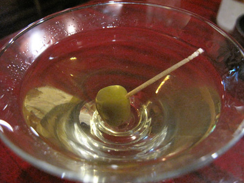 マティーニをグラスに注いだ後に、マスターがパカッと開けたオリーブの瓶。