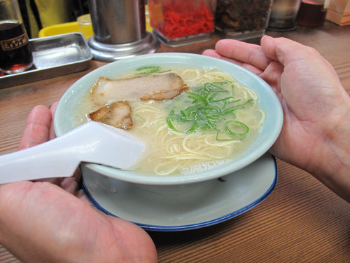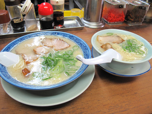 久しぶりなので同僚は基本の豚骨ラーメンを注文。