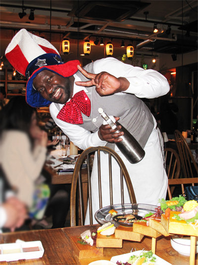 セネガルマン、次はグランメゾンの如く(笑)、デザートワゴンをゴロゴロ押して回ってます。