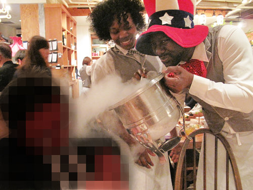 テーブルで料理を仕上げるパフォーマンス。