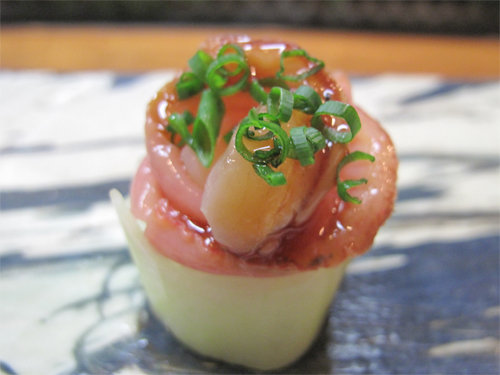 繊細な味の創作寿司なので、最初に味わおうという友人のススメで、